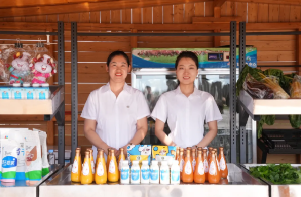 展示廳內(nèi),三河牛酸奶、奶酪、鮮奶磚,黃瓜、南瓜、茄子以及各類文創(chuàng)產(chǎn)品整齊劃一地陳列在展示架上,從新鮮的蔬菜水果、優(yōu)質(zhì)的三河牛乳制品,到獨特的文創(chuàng)產(chǎn)品,無不體現(xiàn)了謝爾塔拉農(nóng)牧場公司對品質(zhì)的嚴(yán)格把控和對消費者的用心服務(wù)。
