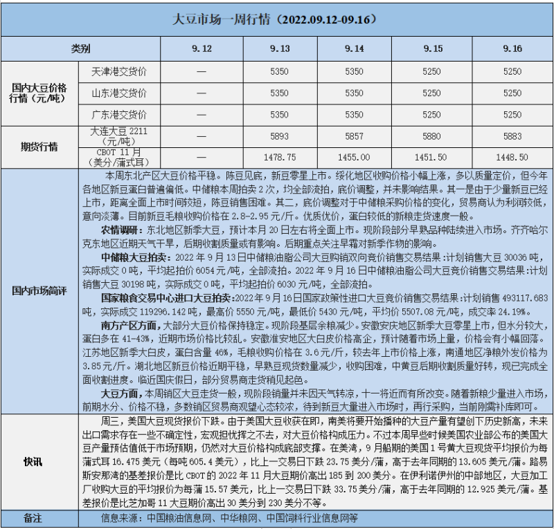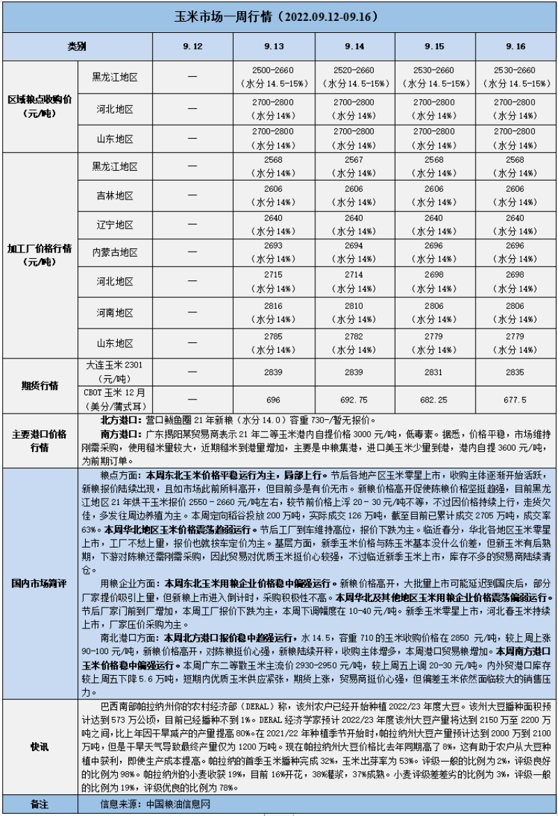 天然橡膠、大豆、玉米市場一周行情(2022.09.12-09.16)