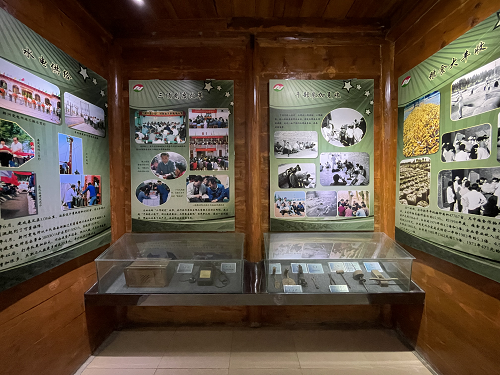 展覽館記載著自1953年農(nóng)場(chǎng)建場(chǎng)以來的發(fā)展歷程,展現(xiàn)了職工住房從地窩變洋樓、農(nóng)業(yè)生產(chǎn)從人拉肩扛到“三大一化”的喜人變化。一層為歷史展覽,主要展品是農(nóng)場(chǎng)發(fā)展歷程中留下的勞動(dòng)工具及珍貴照片: