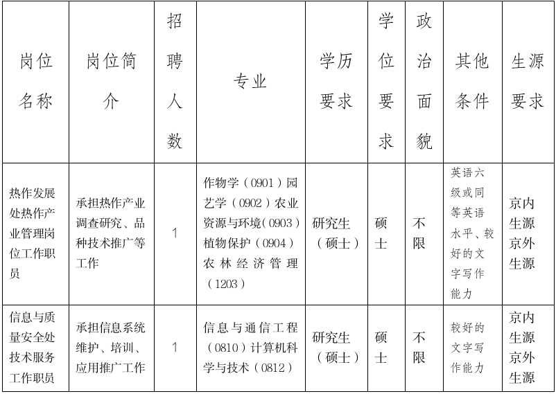 6.根據(jù)北京市疫情防控要求,我單位將隨時(shí)調(diào)整招聘工作有關(guān)安排。請考生及時(shí)關(guān)注中國農(nóng)業(yè)農(nóng)村人才網(wǎng)、中國農(nóng)墾(熱作)網(wǎng)相關(guān)信息。