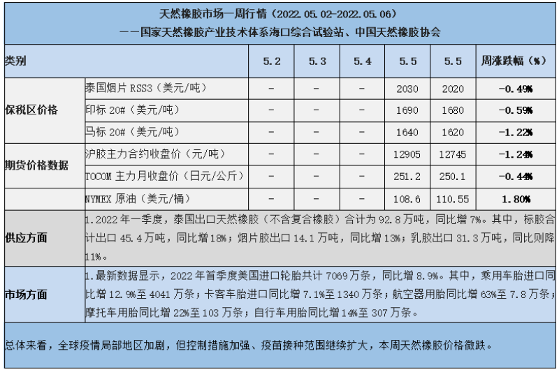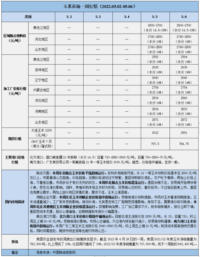 天然橡膠、大豆、玉米市場(chǎng)一周行情(2022.05.02-05.06)