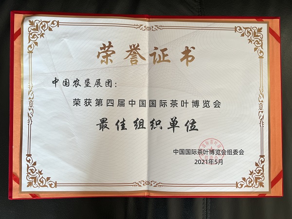3.2021年5月,經(jīng)濟貿(mào)易處牽頭組織,精選12個墾區(qū)的29家茶企,以“中國農(nóng)墾展團”的形式,參加第四屆中國國際茶業(yè)博覽會,會上開展了中國農(nóng)墾茶品牌推介活動、發(fā)布中國農(nóng)墾茶產(chǎn)業(yè)聯(lián)盟形象宣傳片,對促進農(nóng)墾茶產(chǎn)業(yè)發(fā)展、提高農(nóng)墾茶品牌影響力奠定了堅實的基礎(chǔ)。中國農(nóng)墾展團獲得第四屆中國國際茶業(yè)博覽會最佳組織單位。