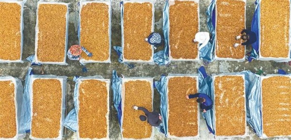 在海南農(nóng)墾母山咖啡廠,職工在晾曬咖啡豆。 袁琛 攝