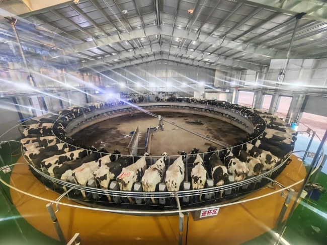 智能提效能,激活生產(chǎn)新引擎。擠奶廳內(nèi),智能化設(shè)備成為生產(chǎn)效能提升的“核心動(dòng)力”。全新80位利拉伐重型擠奶轉(zhuǎn)盤(pán)穩(wěn)定運(yùn)轉(zhuǎn),搭載帝波羅智能識(shí)別系統(tǒng),0.3秒內(nèi)即可完成牛只身份核驗(yàn),同步采集擠奶速率、奶量等8項(xiàng)核心數(shù)據(jù)。得益于智能技術(shù)賦能,牛只識(shí)別率從30%躍升至90%,擠奶效率從432頭/小時(shí)提升至468頭/小時(shí),生產(chǎn)效能實(shí)現(xiàn)質(zhì)的飛躍。每頭奶牛的成長(zhǎng)軌跡、產(chǎn)奶數(shù)據(jù)均被完整記錄,形成詳盡養(yǎng)殖檔案,既為精細(xì)化管理提供數(shù)據(jù)支撐,也為后續(xù)產(chǎn)業(yè)升級(jí)筑牢基礎(chǔ)。