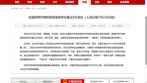 農(nóng)墾中心與海南省農(nóng)墾投資控股集團(tuán)共同主辦2025年中國國際熱作產(chǎn)業(yè)大會,人民日報(bào)、新華社、農(nóng)民日報(bào)等媒體宣傳報(bào)道。