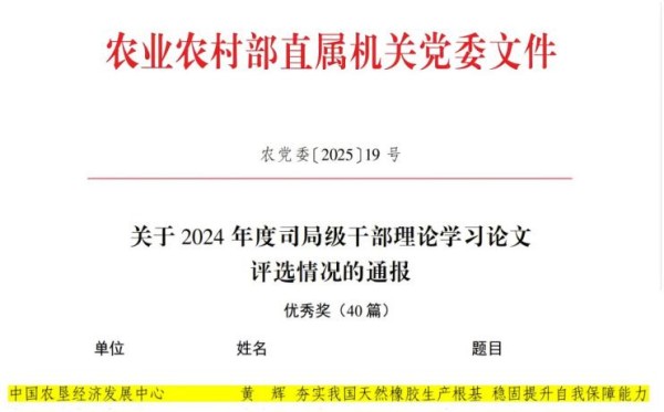黃輝同志獲得2024年度司局級干部理論學(xué)習(xí)論文優(yōu)秀獎。