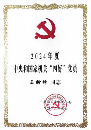 王盼盼同志獲得2024年度中央和國家機(jī)關(guān)四好黨員。