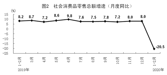 根據(jù)第四次全國經(jīng)濟(jì)普查結(jié)果對2019年社會消費品零售總額進(jìn)行了修訂,2020年1-2月份增速按照可比口徑計算。