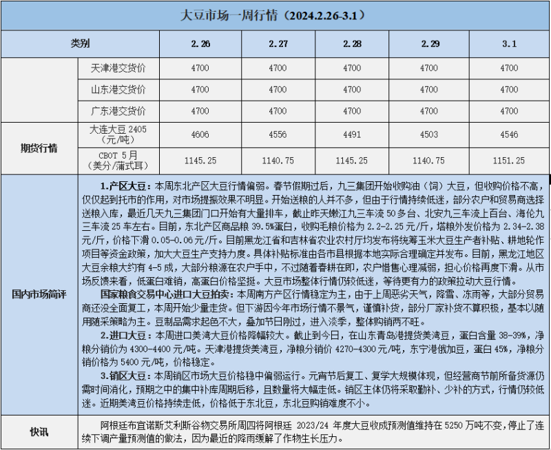 天然橡膠、大豆、玉米市場(chǎng)一周行情(2024.02.26-03.01)