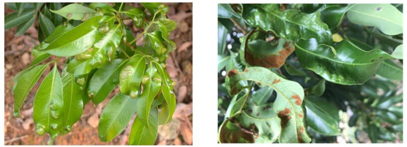荔枝癭螨屬于蛛形綱蜱螨目癭螨科,是荔枝的重要害蟲。荔枝癭螨取食可為害荔枝嫩葉、枝梢、花穗和果實(shí),被害葉片畸形扭曲,被害部位產(chǎn)生毛氈狀物,嚴(yán)重影響荔枝的生產(chǎn)。目前,正值荔枝嫩梢抽出及生長期,同時(shí)也是荔枝癭螨大量繁殖的高峰期,專家組建議廣東、廣西、福建等荔枝主產(chǎn)區(qū)加強(qiáng)對荔枝癭螨的監(jiān)測,并根據(jù)其生活習(xí)性開展防控工作。