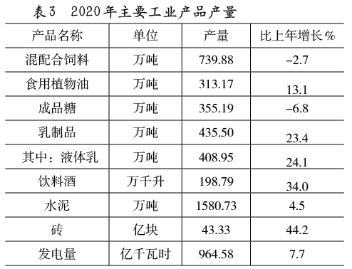 主要工業(yè)產(chǎn)品產(chǎn)量見表3。